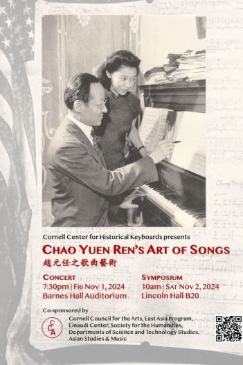 The Cornell Center for Historical Keyboards presents “Chao Yuen-Ren’s Art of Songs,” a concert-symposium-exhibit that explores the musical legacy of the pioneering Chinese-American polymath and Cornell alumnus (class of 1914). Through performances, scholarly discussions, and an online exhibition, this two-day event celebrates Chao’s groundbreaking contributions to modern Chinese art music.