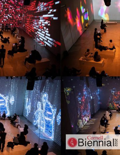 Sponsored by the Cornell Council for the Arts and curated by Timothy Murray, the 2022 Cornell Biennial "Futurities, Uncertain" features exhibitions, installations, and performances by 23 international and 17 Cornell-based artists. Free and open-to-the-public events will rotate on the Cornell Ithaca campus and the Cornell Tech campus in New York City from July through December 2022.