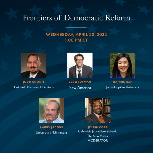 Please join us on Wednesday, April 20th for a panel discussion that will explore the practical steps that can be taken to guard against democratic backsliding in the United States and bolster the integrity of a functional national government. Topics of discussion will include election administration, political party reform, proportional representation, and civic organizing. Register now!