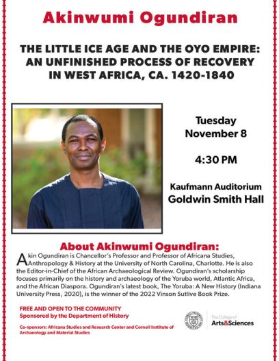 Akin Ogundiran is Chancellor’s Professor and Professor of Africana Studies, Anthropology & History at the University of North Carolina, Charlotte. He is also the Editor-in-Chief of the African Archaeological Review. Ogundiran’s scholarship focuses primarily on the history and archaeology of the Yoruba world, Atlantic Africa, and the African Diaspora. Ogundiran’s latest book, The Yoruba: A New History (Indiana University Press, 2020), is the winner of the 2022 Vinson Sutlive Book Prize.