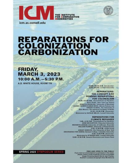 Given the intertwined history of industrial capitalism, extraction and colonialism, this symposium will explore the pending reparations to their victims from a multidisciplinary perspective. Acknowledging the accountability of the first industrializing countries of the Global North to the previously colonized countries of the Global South, the symposium will address the importance of material and moral reparations in bringing justice to the residual inequalities caused by slavery and racism, environmental extraction and pollution. The intention is to explore the intersections between colonialism and climate change, de-colonization and de-carbonization, transitional justice and energy transition.