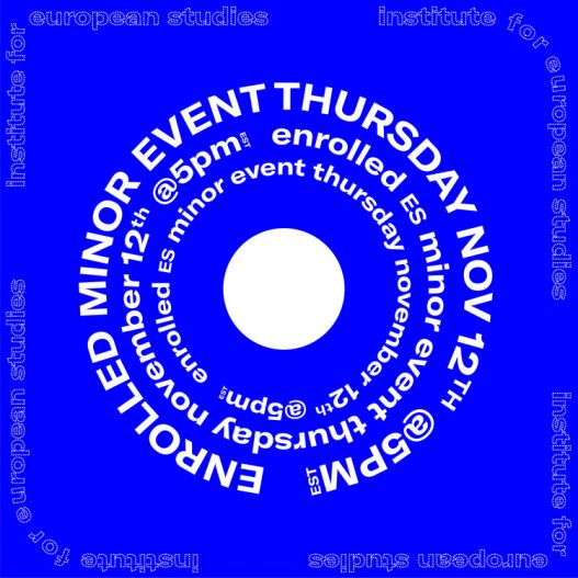 If you’re already enrolled in the minor, join us on Thursday, November 12th at 5:00 pm to learn what opportunities are available to you and to meet other students interested in European Studies.