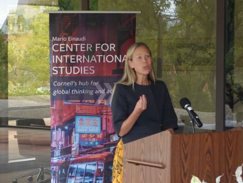 She invited attendees to join Einaudi, the Cornell community, and representatives from Global Hubs around the world at the Global Grand Challenges Symposium: Frontiers and the Future on November 16–17. Register for the symposium.