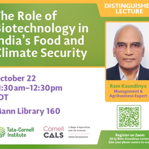Ram Kaundinya, a leading expert on management and agribusiness in India, will deliver a distinguished lecture at Cornell University, titled, “The Role of Biotechnology in India’s Food and Climate Security.”