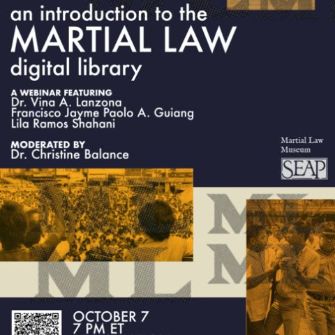 A webinar featuring Vina A. Lanzona, Francisco Jayme Paolo A. Guiang, and Lila Ramos Shahani, moderated by Christine Balance and organized by the Southeast Asia Digital Library.
