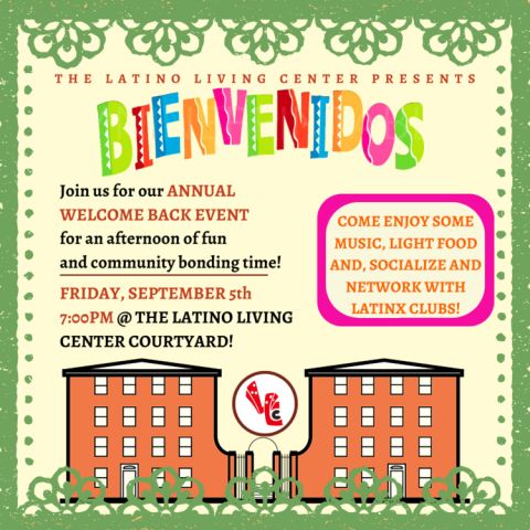 Join us this year for Bienvenidos 2025! It will be an incredible time to learn more about the LatinX student organizations, resources, music, performances, and more! We hope you're ready to mingle and enjoy light foods/refreshments Party popper