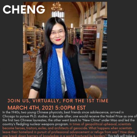 Please join us March 4, 2021 at 5 pm EST for the first virtual Science on Tap! This month, we welcome Dr. Yangyang Cheng and her talk, "When Scientists Cross Water," about the ethics and governance of science, focusing on China and China-US relations.