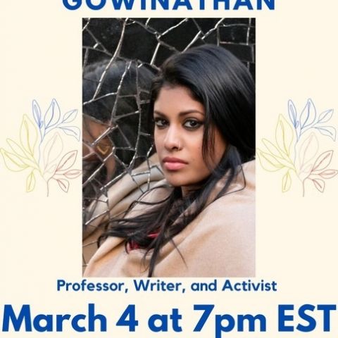 Dr. Nimmi Gowrinathan will lead a workshop titled "Radicalizing Her". The workshop will focus on the topics on topics of feminist theory, identity, gender, power, and violence.