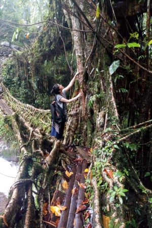 Charlie Tebbutt holds up a recorder in the Colombian Amazon.