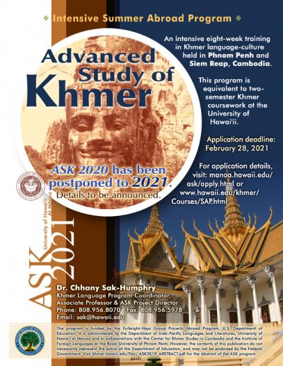 Applications to the Advanced Studies of Khmer Program are due at the end of March.