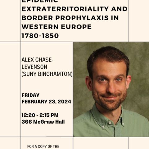 First meeting of the Spring 2024 European History Colloquium will be with Alex Chase-Levenson of SUNY Binghamton. For a copy of the paper please email cem354@cornell.edu.