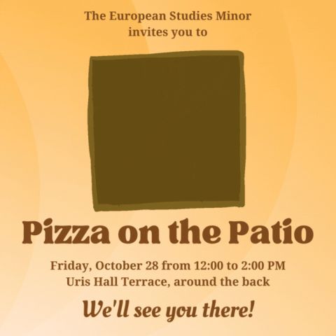 The European Studies Minor invites you to Pizza on the Patio, on Friday October 28 from 12:00 to 2:00 PM on the Uris Hall Terrace.