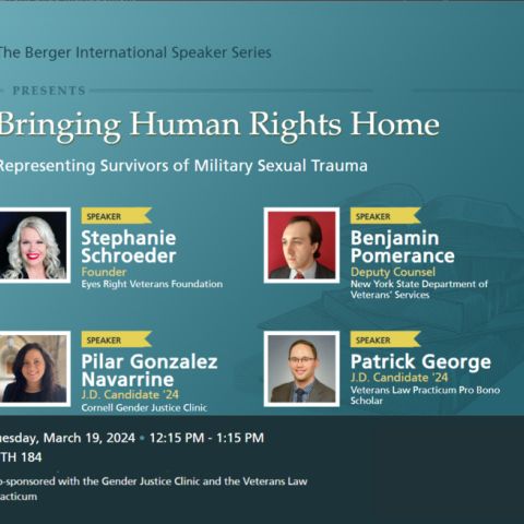 This panel event will consider how domestic and international human rights advocacy can be used to support survivors of military sexual trauma (MST) and contribute to meaningful systemic change. Stephanie Schroeder, founder of the Eyes Right Veterans Foundation, will speak about her experiences in the U.S. Marines…