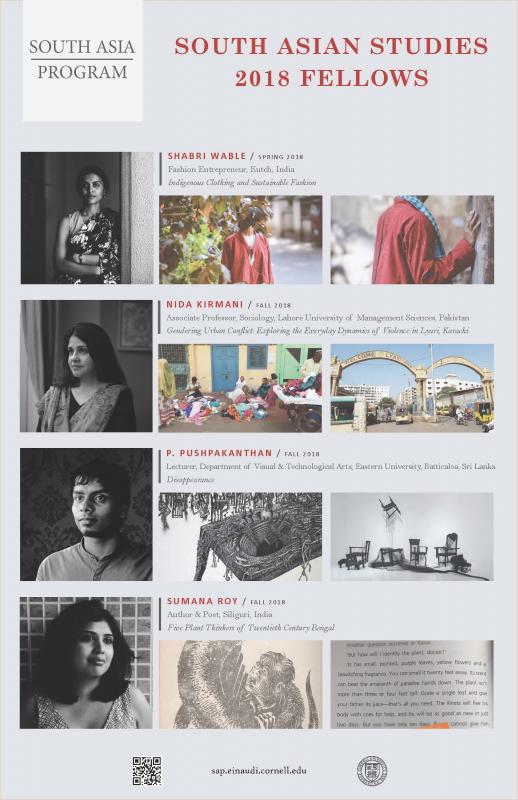 From 2017 to 2020, the South Asia Program supported three cohorts of South Asian Studies fellows from Afghanistan, India, Pakistan, and Sri Lanka. These scholars, writers, curators, and artists based in South Asia visited Cornell University for a fellowship period of between two and four months to undertake research, artistic productions, and/or collaborations related to South Asian Studies.