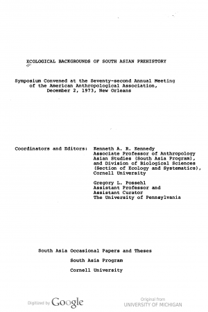 Edited by Kenneth A.R. Kennedy and Gregory L. Possehl, 1976, 235 pages with 36 figures and plates.